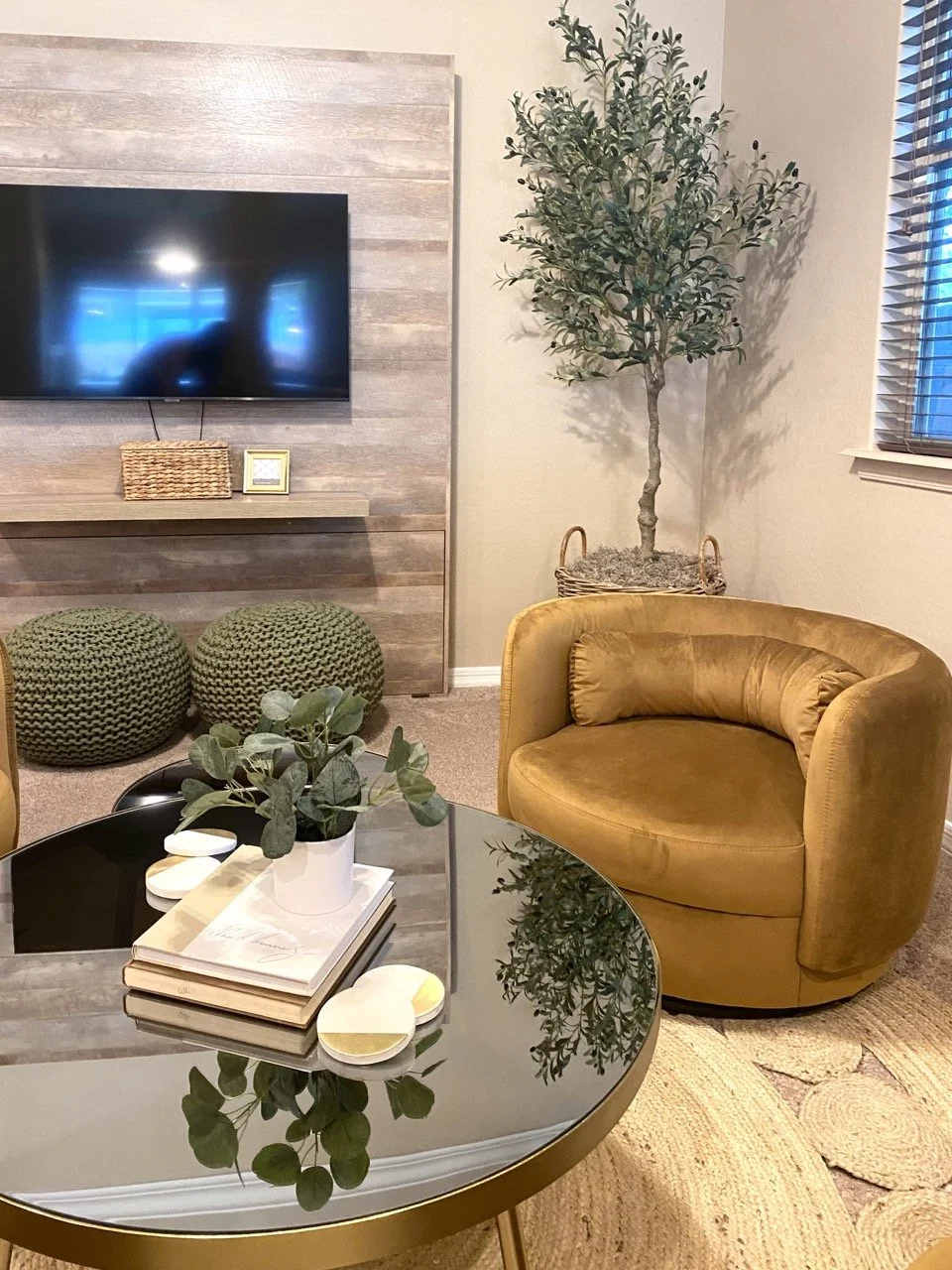 As we learned during the pandemic, there are coffee hours and there are cocktail hours and there is no in between. Call me crazy, but I’ve taken this commandment into my work. When designing a home with children I strongly believe there should be multipurpose spaces that are for children by day, and for adults by night. In this airbnb, it was an entire room.This open concept space between the bedrooms and dining rooom may have previously been a second living room or a formal dining room, but no longer do we need secondary dining spaces anymore. (also… it was carpeted). So we decided to transform this space into a gaming zone where the kids could play games or watch movies. The swivel chairs allows them to face any direction they please and the basket beneath the tv holds their wireless headphones for all of their Silent movie and gaming needs.At night this becomes a relaxing lounge zone for the parents with their glasses of wine and community style seating.